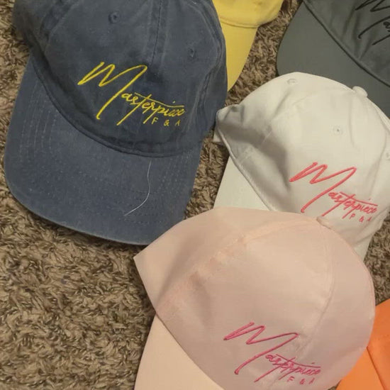 Introducing our Masterpiece Ball Caps: the epitome of simple sophistication and bold style. Perfect for those bad hair days or Saturday morning soccer mom events, these caps are designed to elevate your look effortlessly. Featuring a solid brim for added durability and sun protection, a flexible cap for a comfortable fit, and velcro closure for easy adjustment, these caps offer both style and convenience.